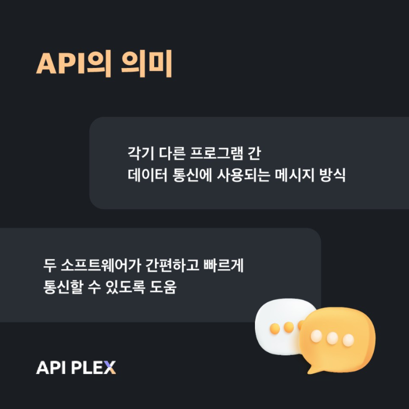 좀 더 쉽게 풀어보자면 API는 두 소프트웨어가 서로 통신할 수 있도록 도와주는 역할을 한다고 보시면 됩니다.